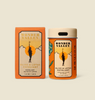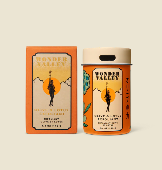 Plastic-free packaging, powder is in a custom aluminum jar comes in a paper box.