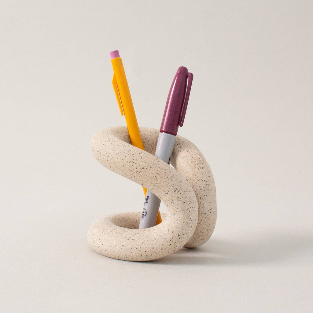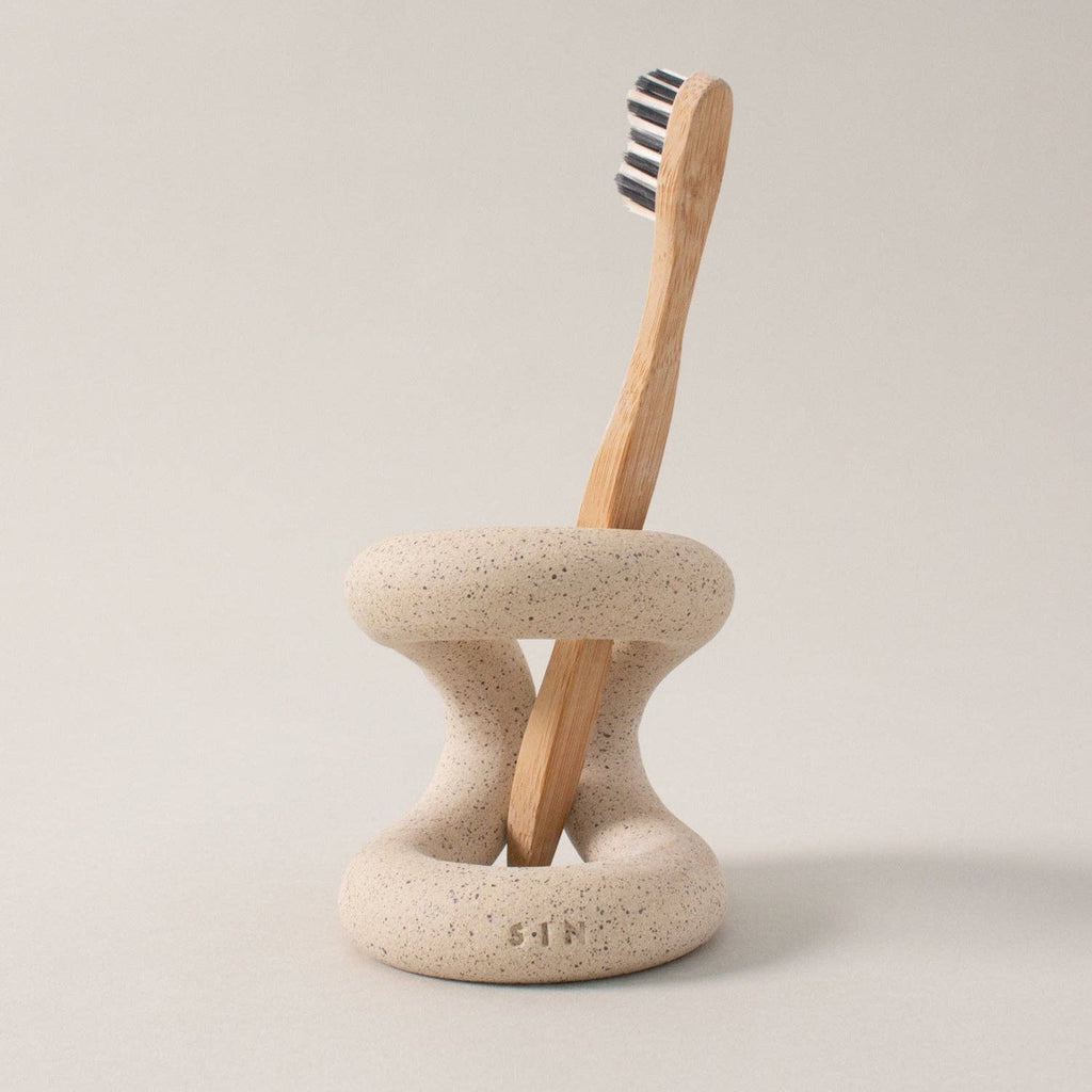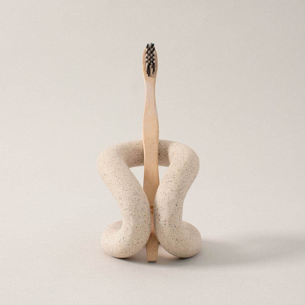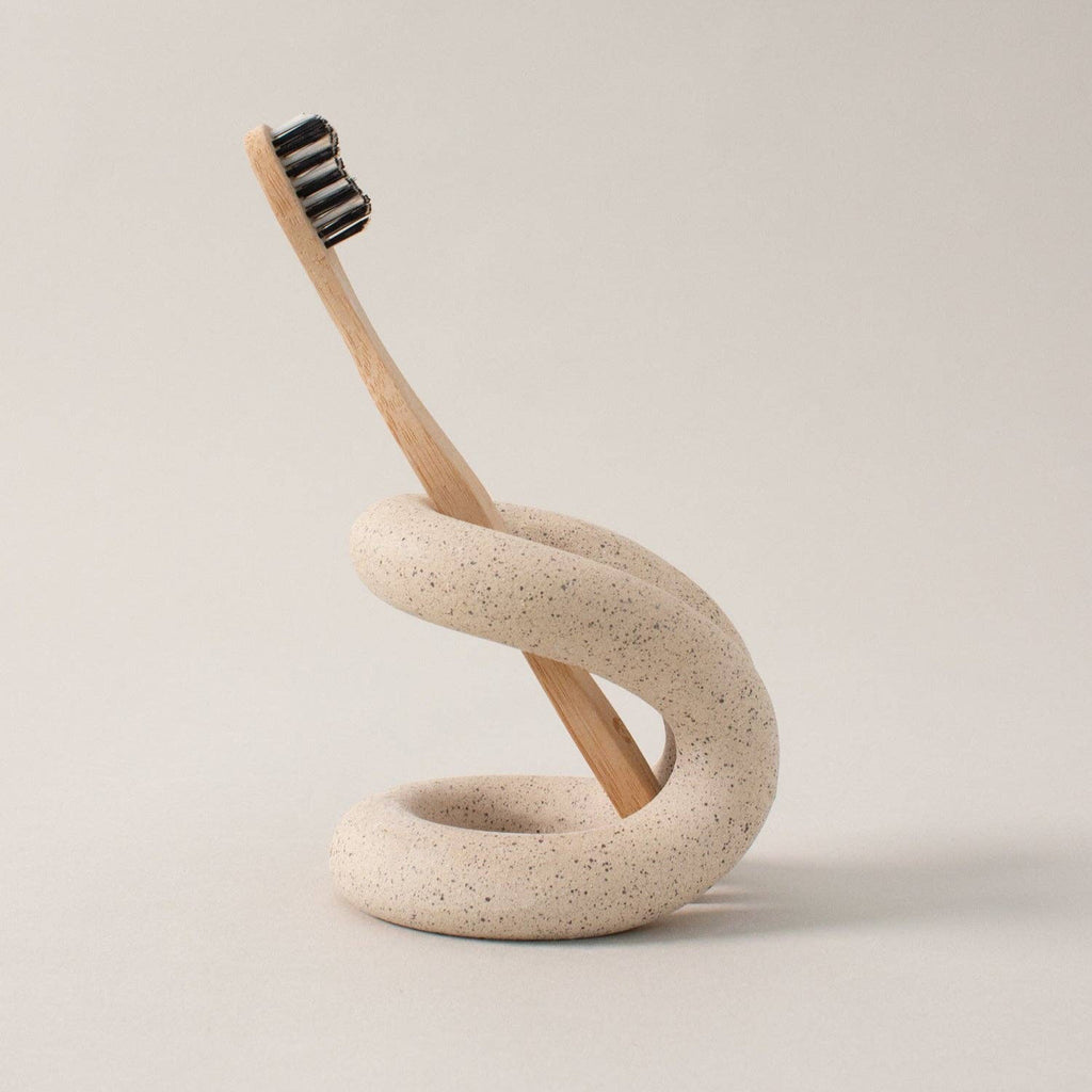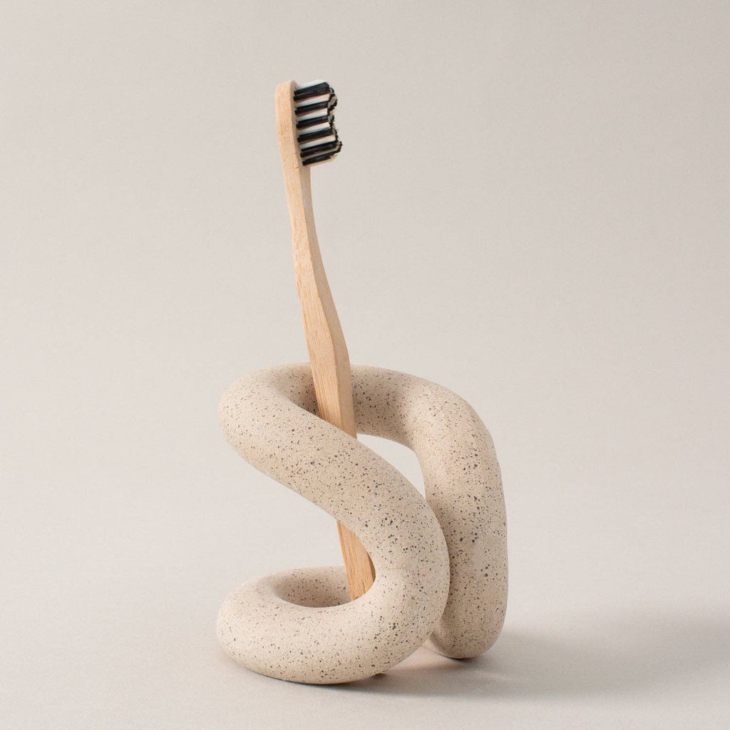 A chunky coiled toothbrush holder. Leo is here to keep your teeth cleaning device safe in its curved embrace. It’s also great to hold pens, makeup brushes, anything similar to that size and shape, really!