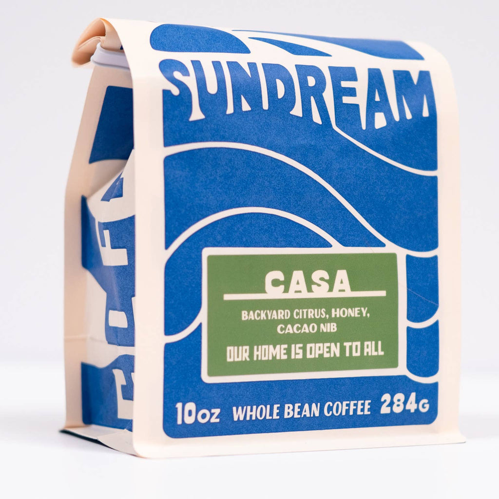 LIGHT & BRIGHT TASTING NOTES: Sweet Citrus | Honey | Cacao Nib ABOUT THIS COFFEE: From our casa to yours, this is the blend that started it all. A cup of CASA is sweet and bright, combining balanced notes of zesty citrus with honeyed cacao. As Sundream's flagship blend - this is the founders' favorite, and their favorite way to drink it is over ice on a hot day. OUR FAVORITE WAY TO BREW: Chemex or V60 Pour Over at an 18:1 water to coffee ratio.