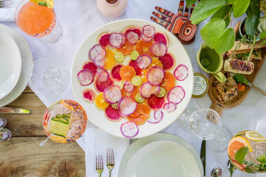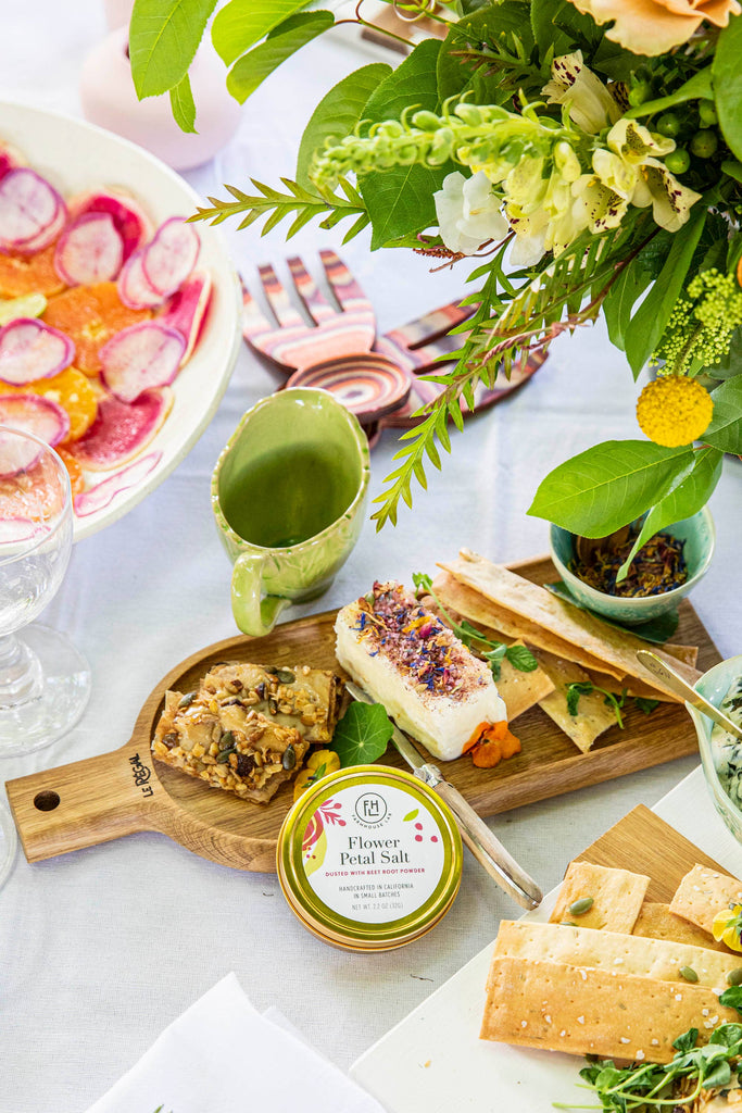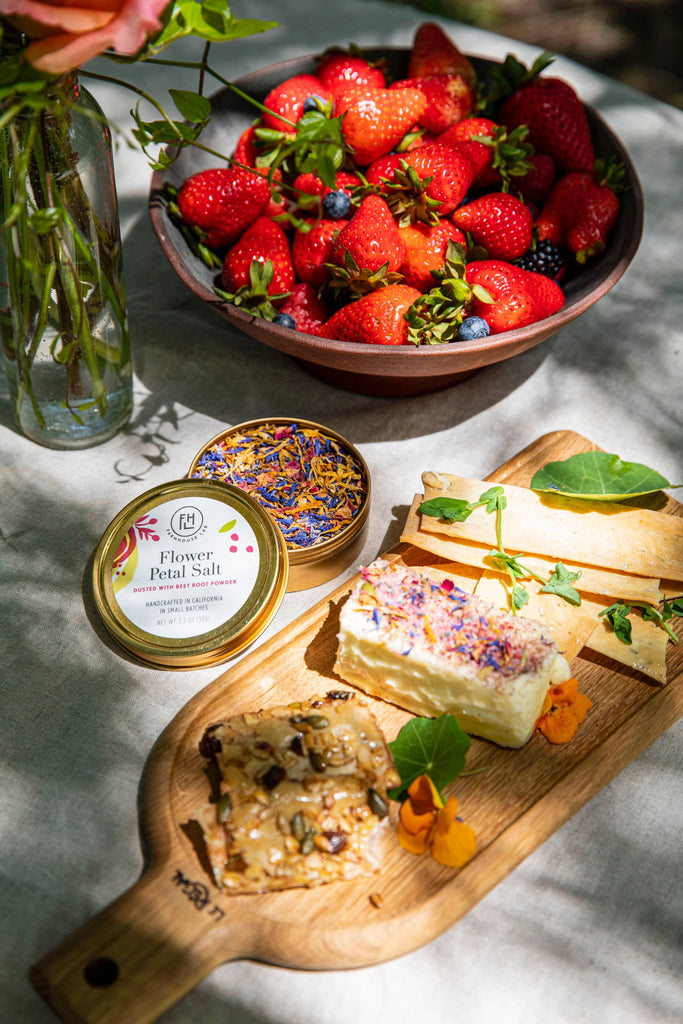 Flower Petal Salt makes every dish instantly look beautiful while it adds flavor and functional properties of the flowers, the beet root powder and the salt we use. It is the perfect addition to our Real Food Dressings that make healthy eating tasteful, playful and beautiful. Farmhouse Lab Flower Petal Salt includes organic rose, marigold and cornflower petals, lavender buds, coarse celtic sea salt and beet root powder. Sprinkle over salads, appetizers, soups, cheese-boards, etc and place in a ceramic salt dish on any table. Also a great hostess gift!