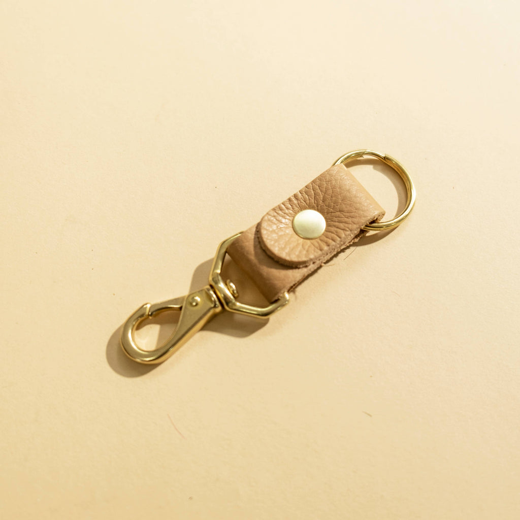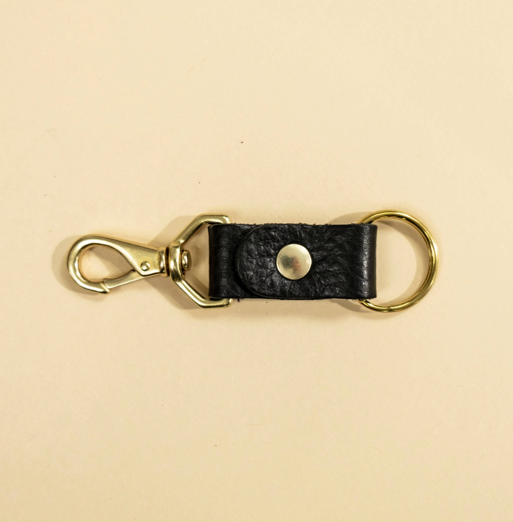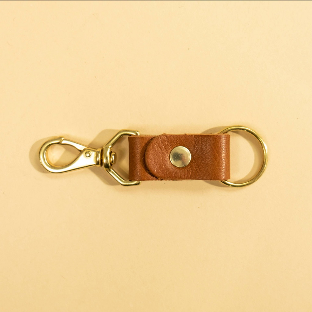 Organize your keys while making a modern statement with Primecut's keychain. - Leather exterior - Solid brass hardware - Features a keyring and clip - Measures approx. 1" W x 4" L This product uses scrap material that would normally be thrown away.