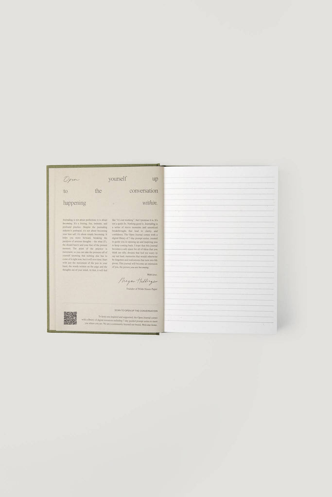 What's Inside? – QR Code: Exclusive FREE access to our Open Journal Digital Library of 6 courses that meet you where you are in your journaling journey. Each course is 7 days long because anyone can commit to week! – Courses: The Basics, Stress & Anxiety, Clarity, Creativity & Unblocking, Pivot and Morning Pages – Explore: https://wildehousepaper.com/pages/open-journal-courses-preview