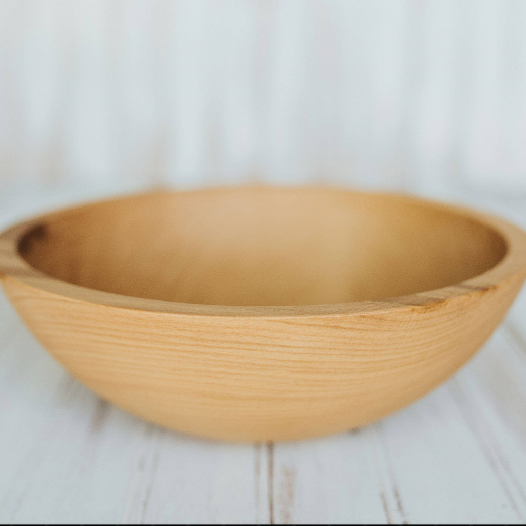 These beech wood serving bowls can hold a salad but also makes a great centerpiece or popcorn bowl. Unique present for the holidays, weddings, housewarmings and birthdays!