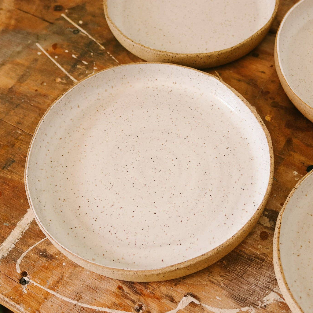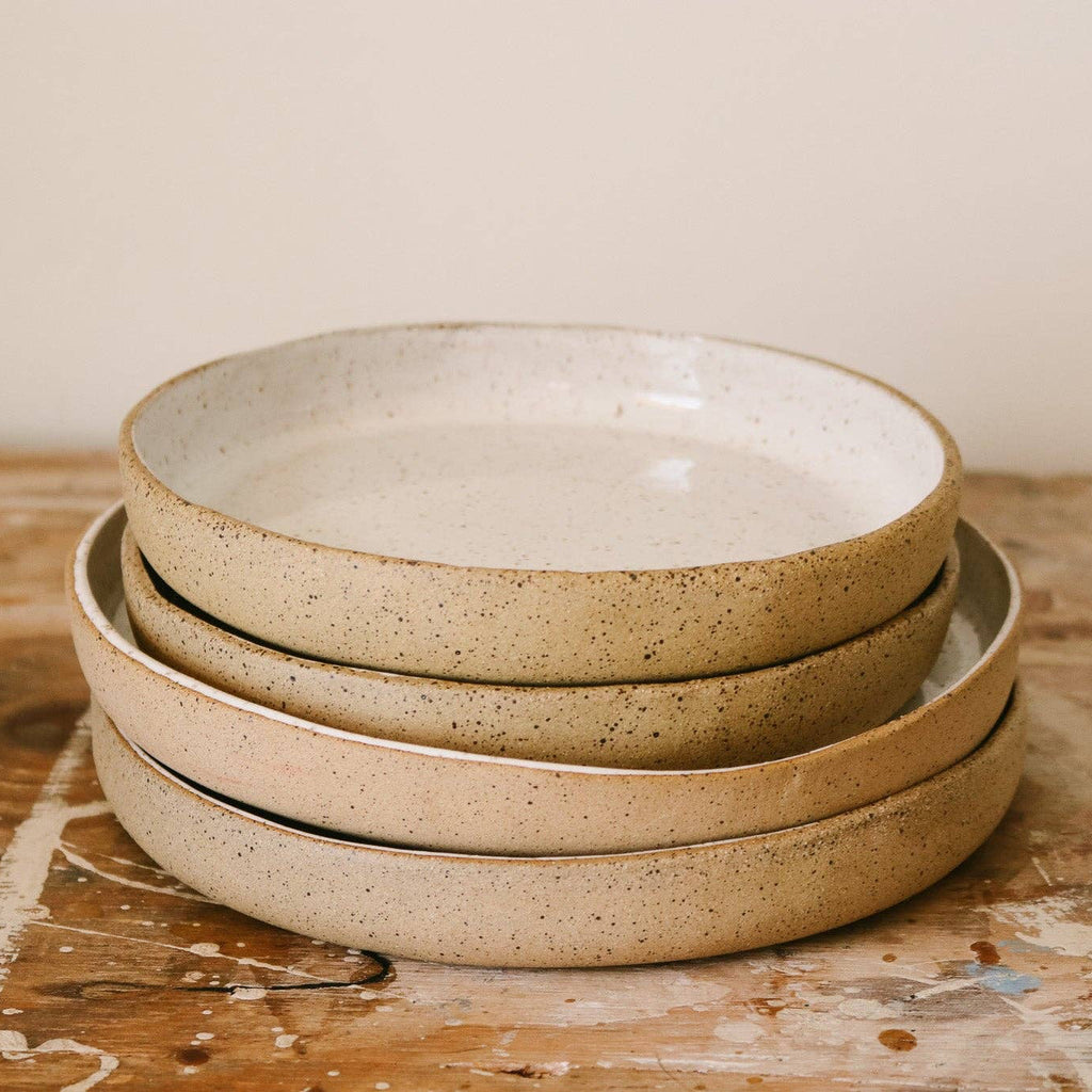 Is it a bowl? Is it a plate? Some folks call it a pasta plate. One things for sure, we love the high-sides to these plates. Available in dinner and salad plate sizes. Speckled Clay. Microwave and Dishwasher safe. Handmade