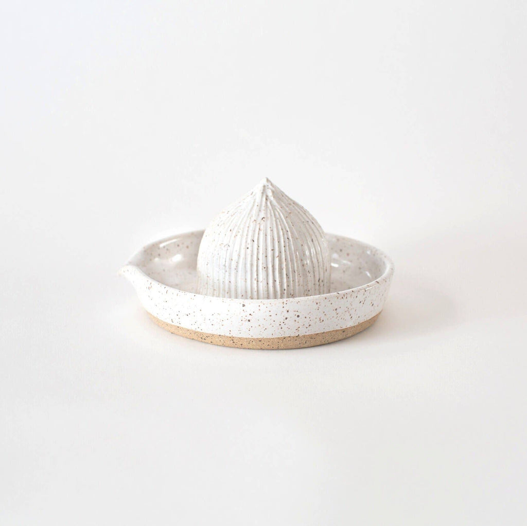 Both functional and decorative, the ceramic citrus juicer is a great addition to any kitchen or perfect as a gift to your culinary friends! It works best with lemons, limes, and small oranges. Dimensions: 6"w x 2. 75"H. Microwave and dishwasher safe. Made from domestically sourced speckled brown cone 6 stoneware. Lead-free. All pieces are made individually by hand; therefore, colour, size, and shape may vary slightly from piece to piece.
