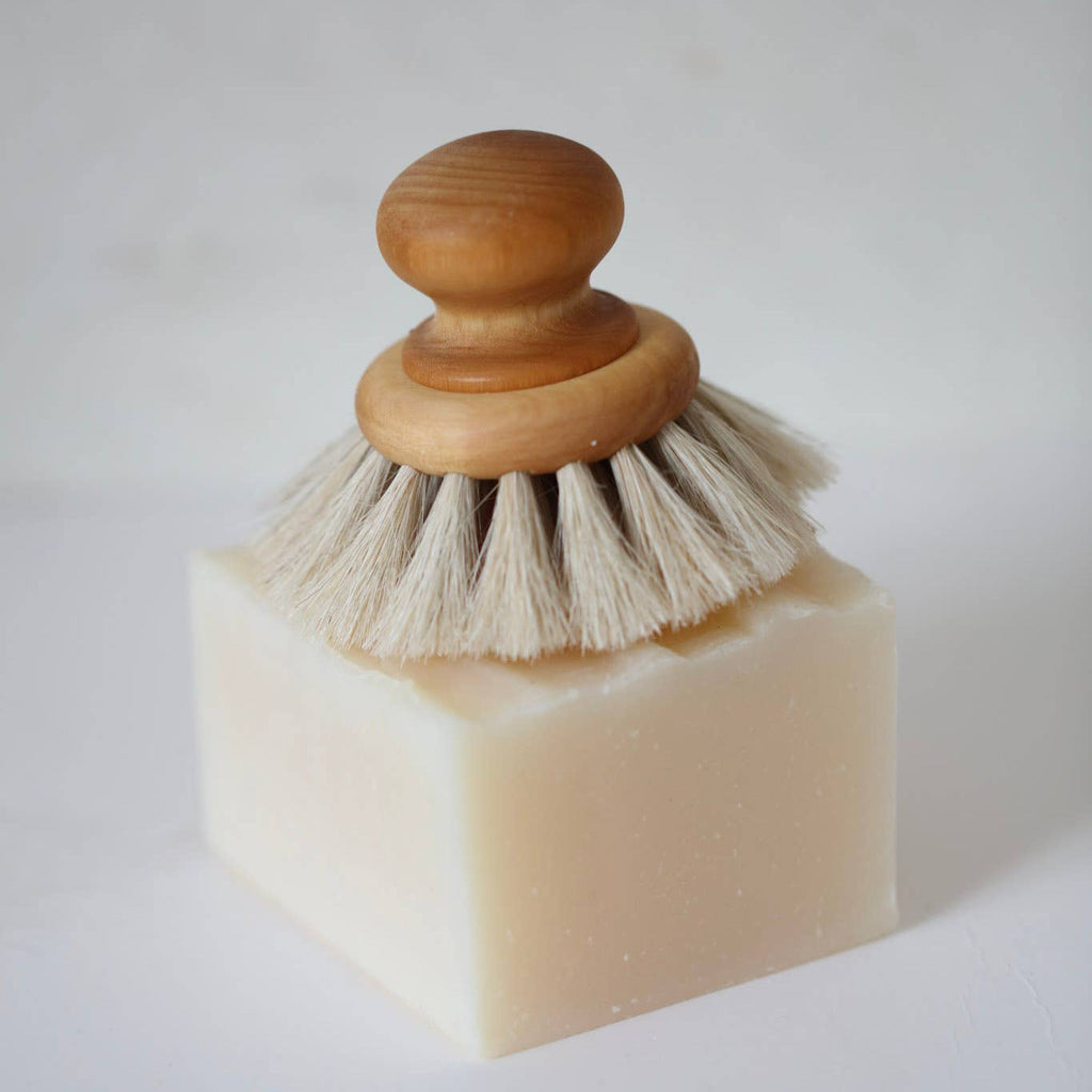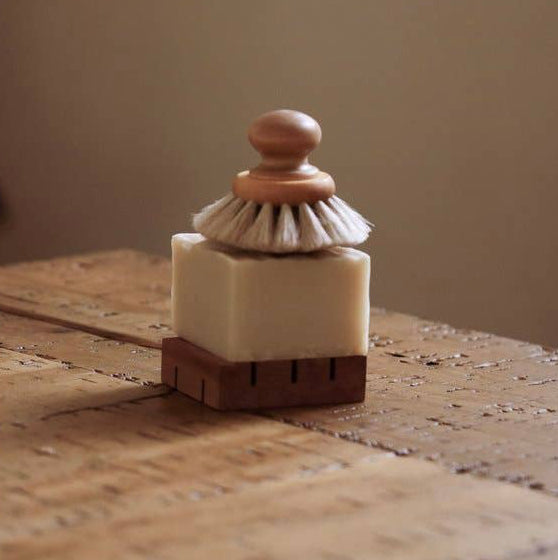 A large and long lasting blend of our cold processed soap, designed for withstanding household dishwashing. Our dish soap is formulated to quickly breakdown debris and oils with a coconut oil based cleansing formula. A rich foamy lather will stretch the period between scrubbing and re-lathering the brush. This soap can also be rubbed into fabric or carpet material and used anywhere that needs extra attention that a regular soap bar will not suffice. A multipurpose cleansing staple for the natural home.