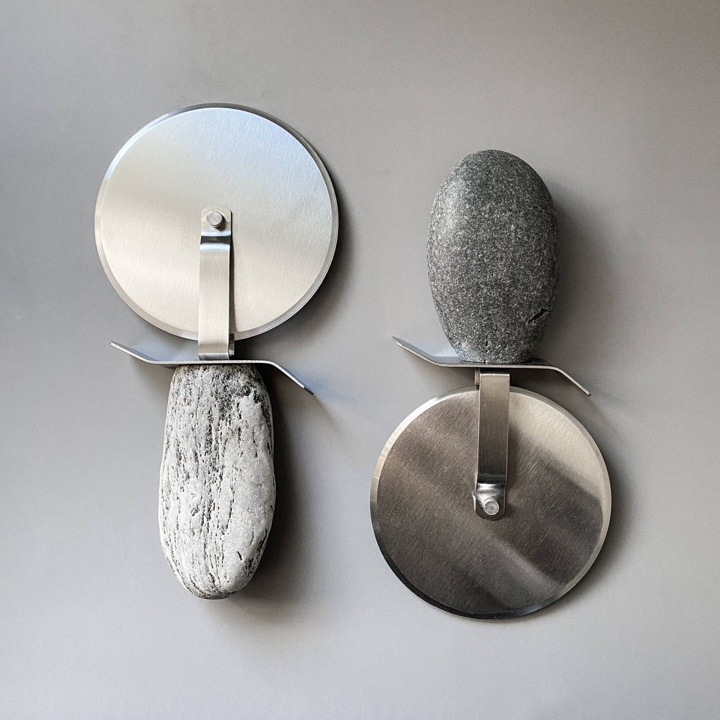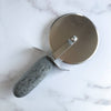Get your pizza service on a roll with this super efficient slicing tool. The classic rotary blade cuts through even the heartiest of fresh baked pizzas with ease. The stone handles are carefully chosen with natural ergonomics in mind. Equipped with a razor sharp blade crafted of durable, heavy-gauge stainless steel and a built-in guard to protect your fingers as you cut. *Stones vary in shape, size, color, texture, weight and may or may not have natural mineral deposits. Due to those variations, the item pictured is an example only and will not be exactly what is received.*