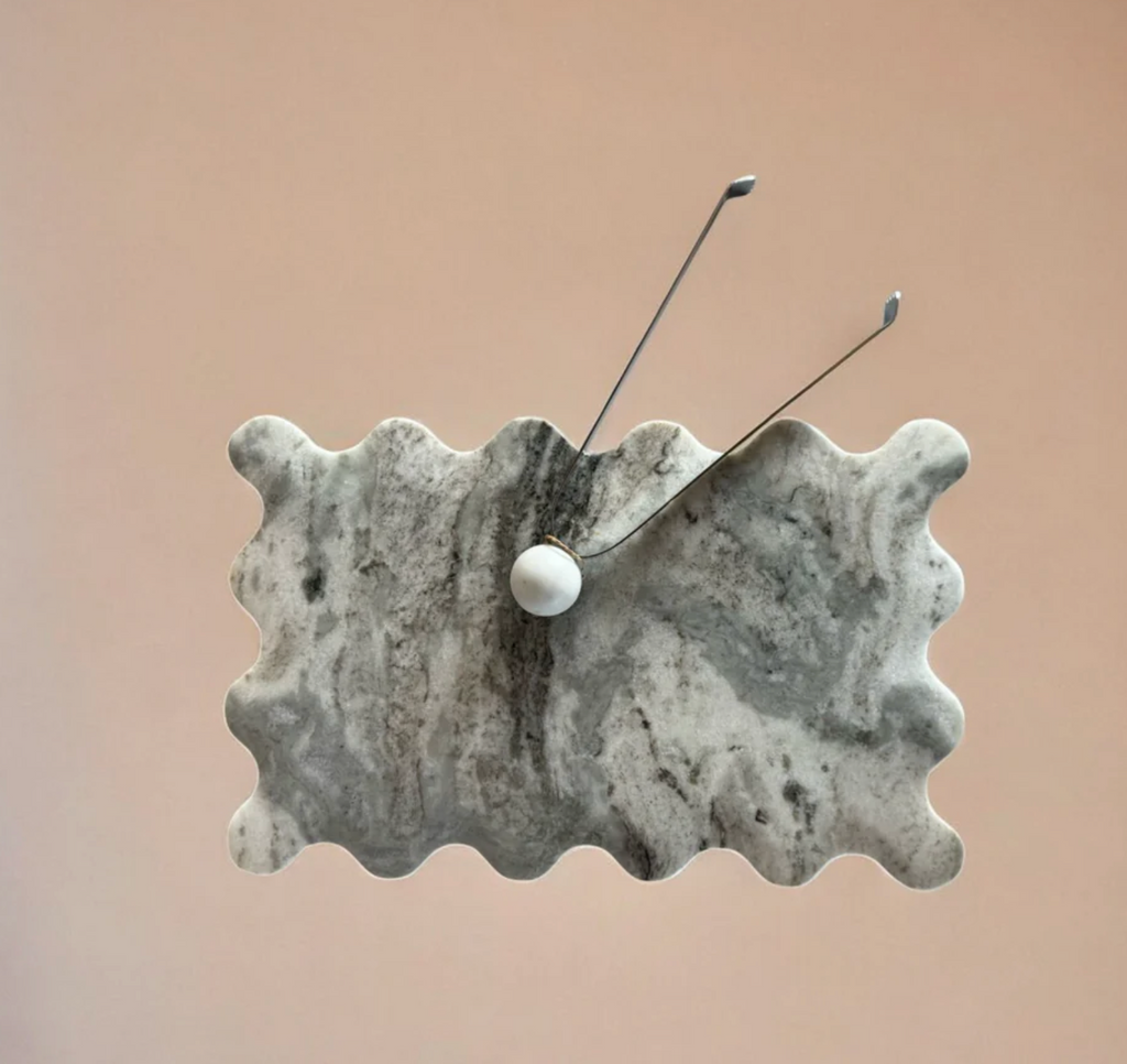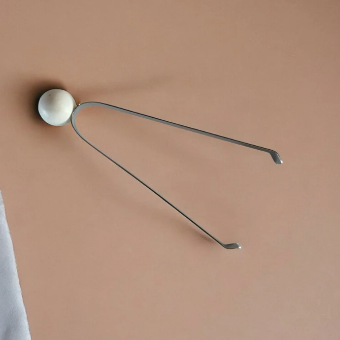 Stainless steel + marble drink ice tongs by MESO.________Polished Stainless Steel + Marble Dimensions 10.12" L. x 4.75" W. x 0.79" H.________