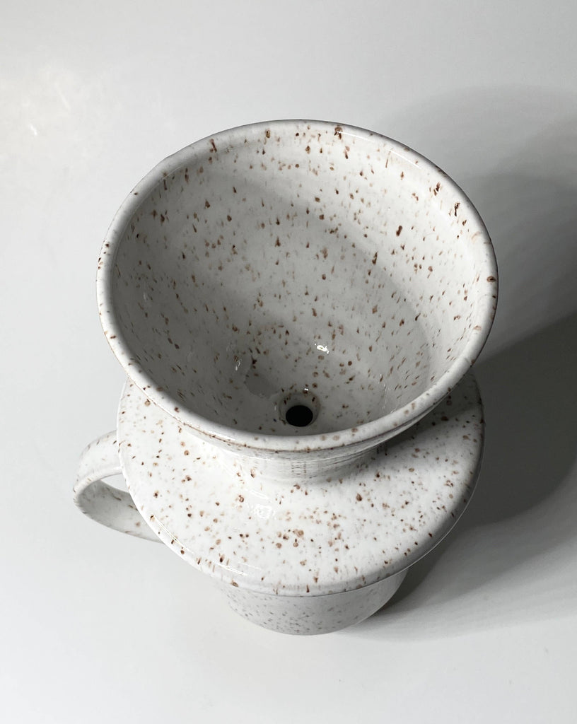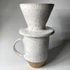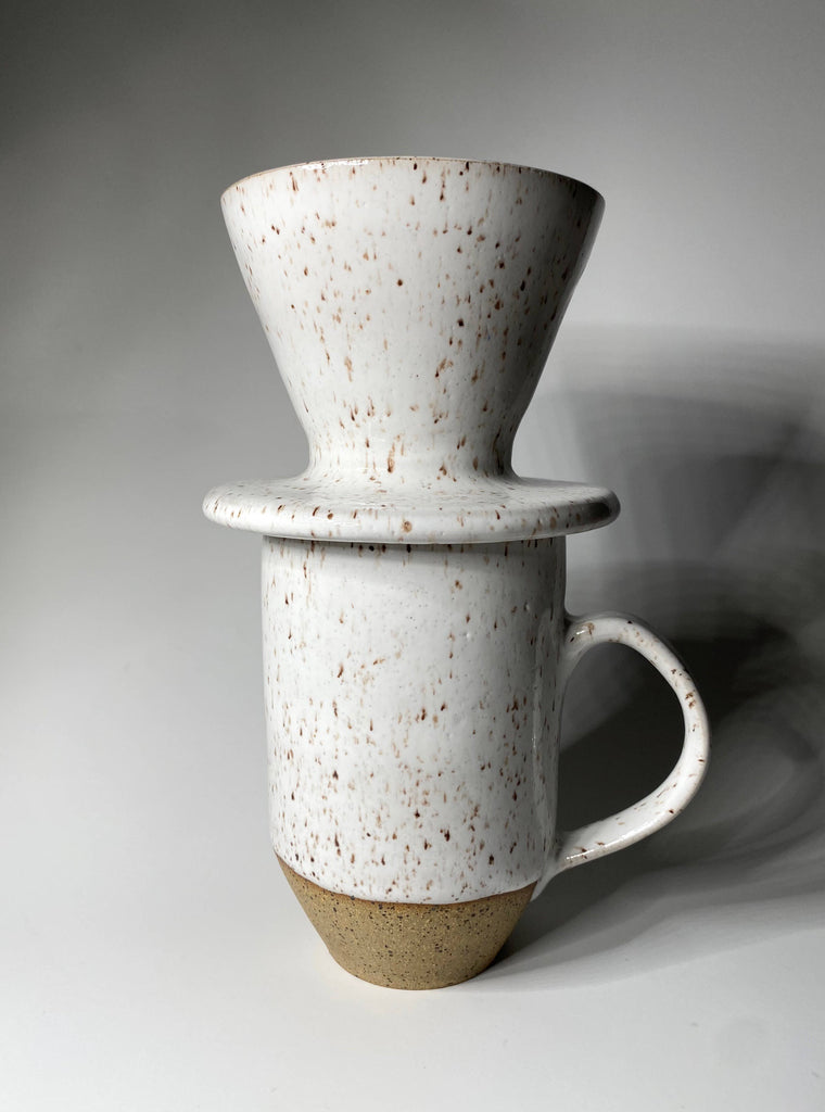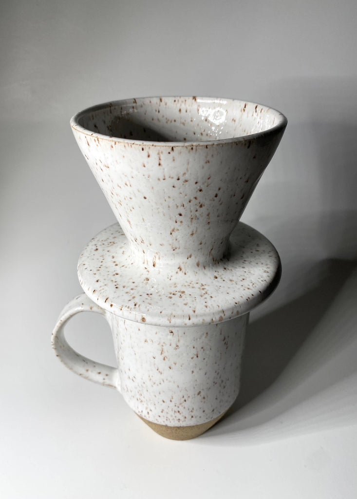 This is a wheel thrown coffee pour over, made from a stoneware clay body which is one of the most durable clay bodies. Once thrown its then trimmed and bisque fired. Once bisqued, the piece is glazed with a glossy glaze and fired to cone 6, which is roughly 2200 degrees Fahrenheit. The piece is then ready for use! All wares are microwave and dishwasher safe.