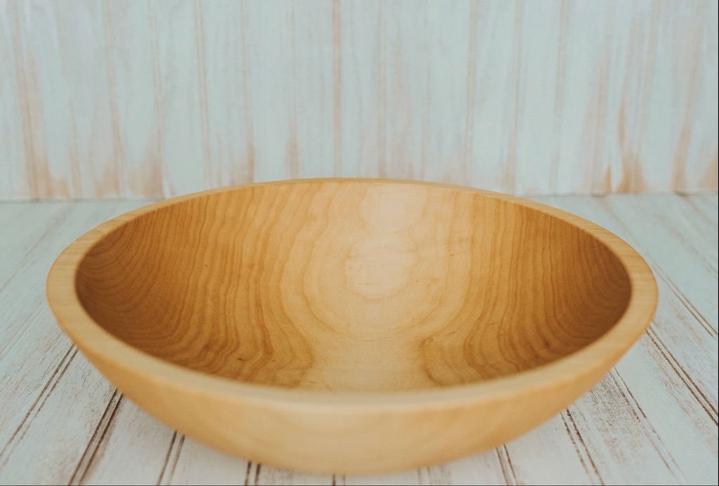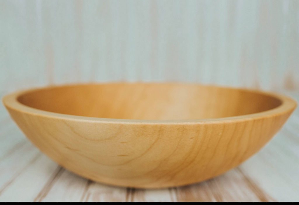 These Sugar Maple Natural serving bowls and can hold a salad but also makes a great centerpiece or popcorn bowl. Unique present for the holidays, weddings, housewarmings and birthdays!