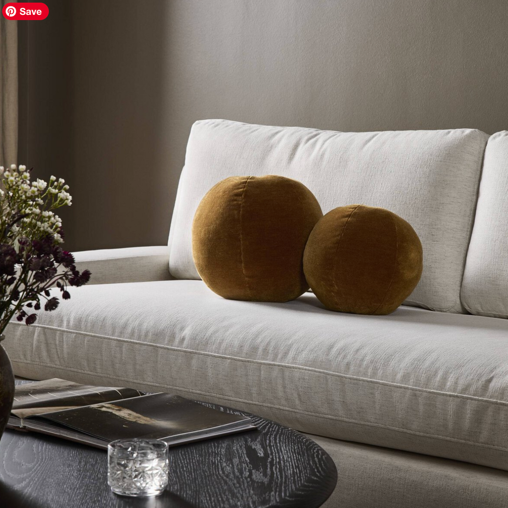 A vary-sized set of tobacco brown velvety pillows bring a fun, luxe pop of texture to any room.