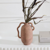 With trendy, modern asymetrical handles & an old world finish, the abstract sculptural ceramic Meander Vases draw the eye no matter how they're displayed. Featuring narrow budvase-sized openings for a few stems, these statement vessels stand out among home decor on a console or shelves, especially layered together
