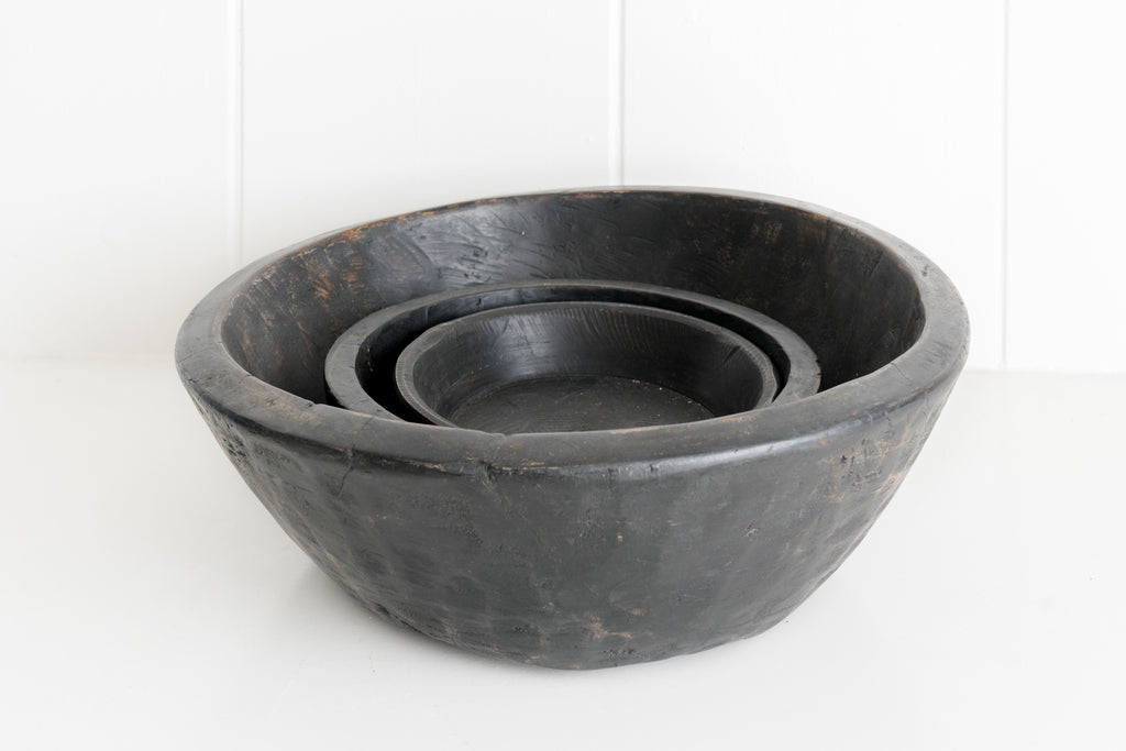 Each of these dough bowls has been individually sourced, with a history all of its own, making them truly unique. The bowl you receive will be similar to those pictured, but distinct in its own way. Now, they've been reclaimed and refinished in food-safe, eye-catching hues. These heritage pieces are ready for a new life in today's home. No two pieces are the same, shape, size and knots can vary.
