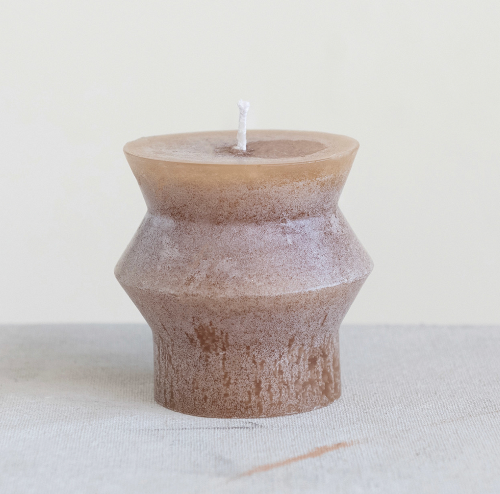 This intricately carved totem pillar candle showcases a striking sculpturesque design. Mix and match the hues and sculptural silhouettes of our artfully crafted totems and tapers for a refined candlelight arrangement on a dining table or mantelpiece.