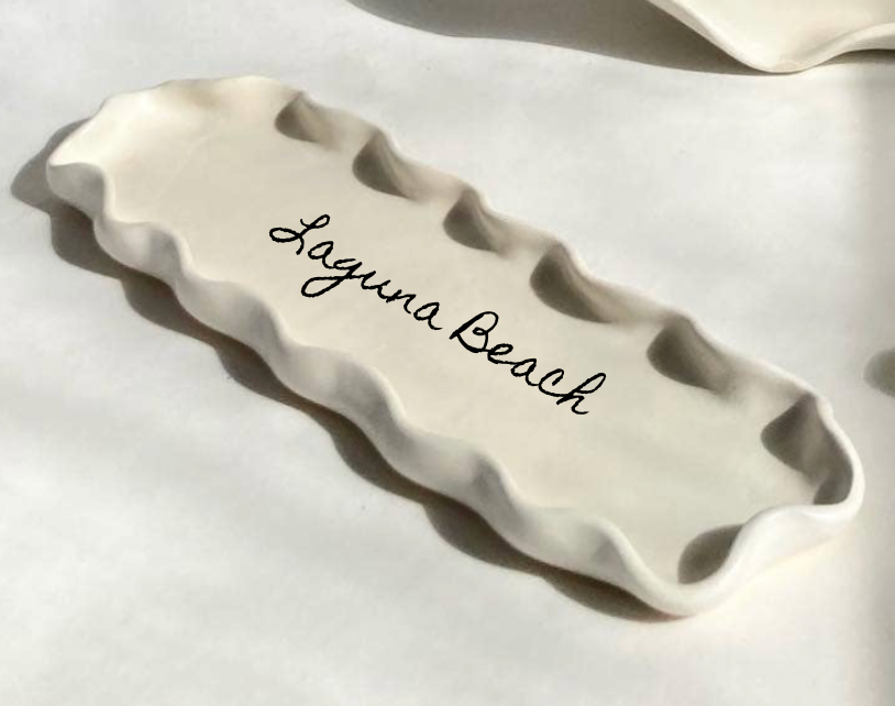 Two different sizes of this jewelry tray. Made by hand, no two are alike. Glazed in off white satin glaze. Small- 4.5" Long - 12"