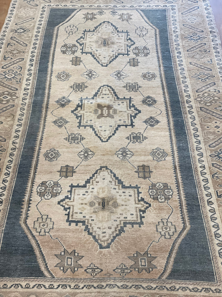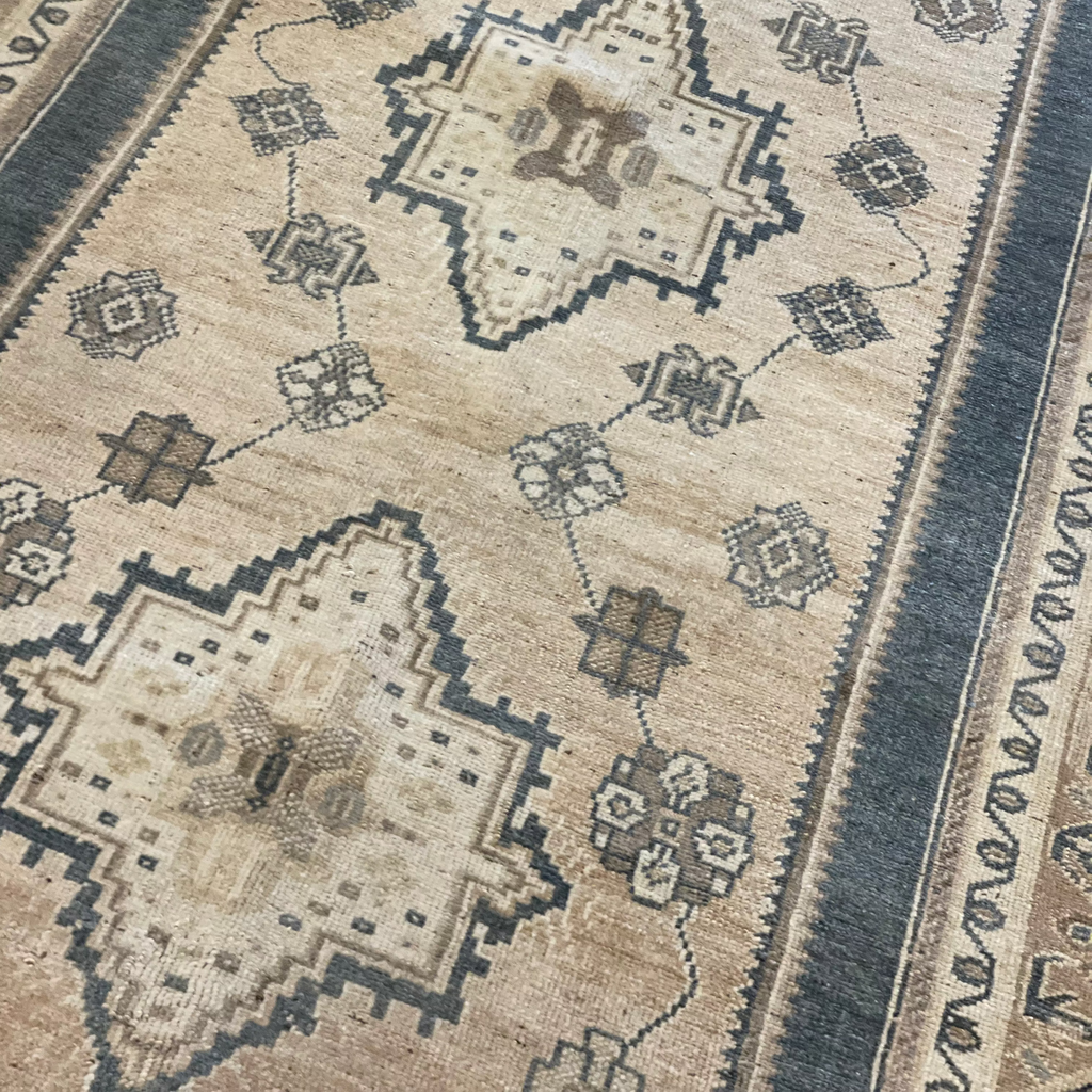 Indulge in the sophistication of our Sonia Rug. Handcrafted in Turkey, this elegant vintage rug features a subtle blend of taupe, sand, and blue adding a touch of warmth to any space.