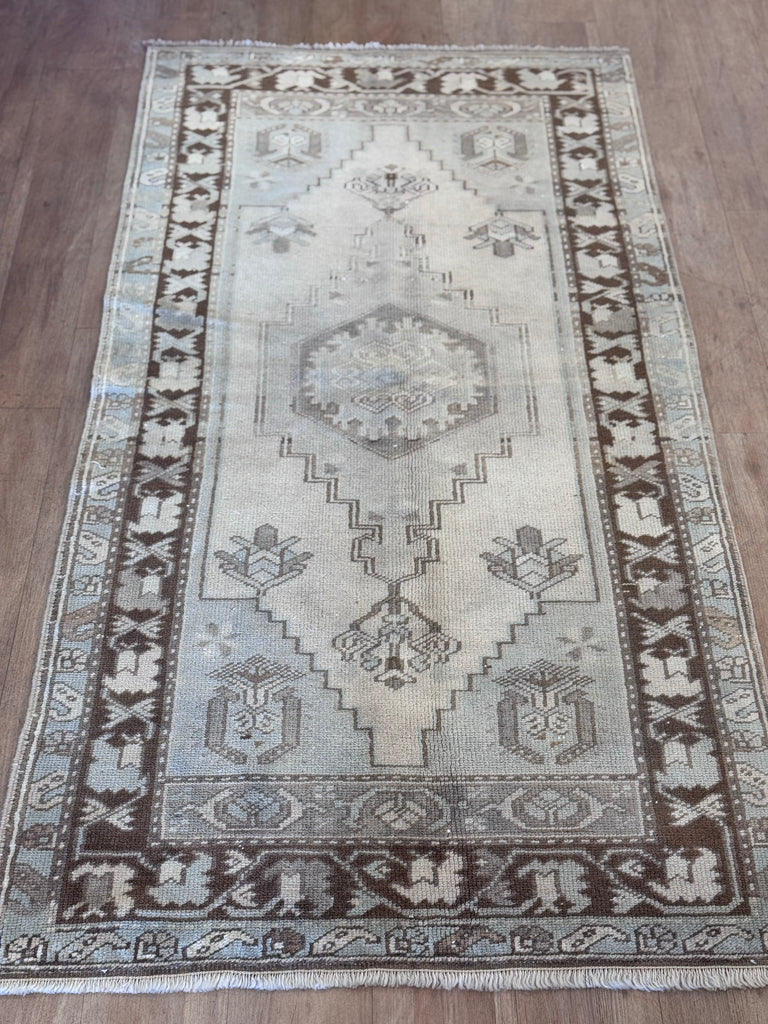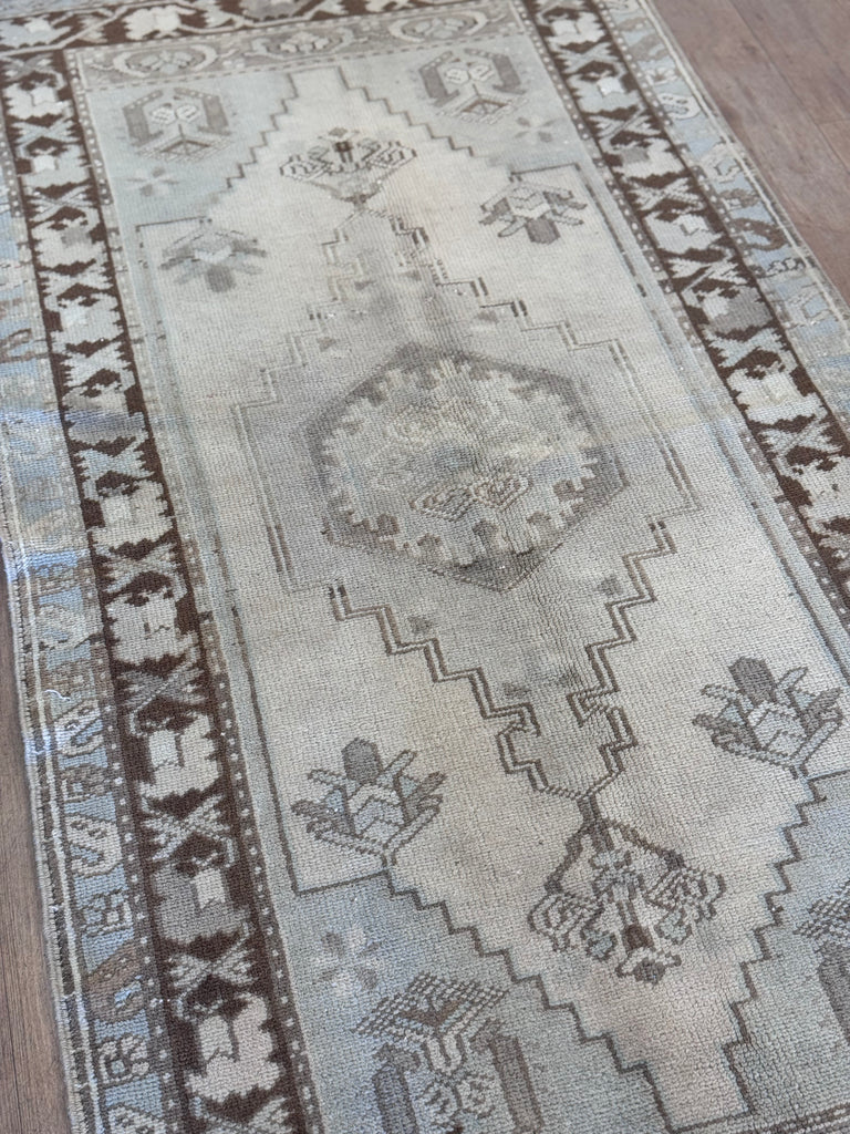 Indulge in the sophistication of our Amelia Rug. Handcrafted in Turkey, this elegant vintage rug features a subtle blend of taupe, mint and gray adding a touch of warmth to any space.
