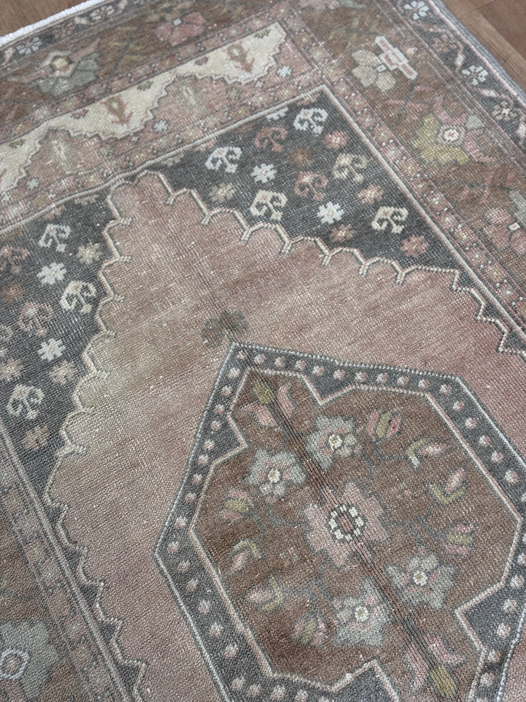 Indulge in the sophistication of our Mia Rug. Handcrafted in Turkey, this elegant vintage rug features a subtle blend of pink, cream and grey adding a touch of warmth to any space.