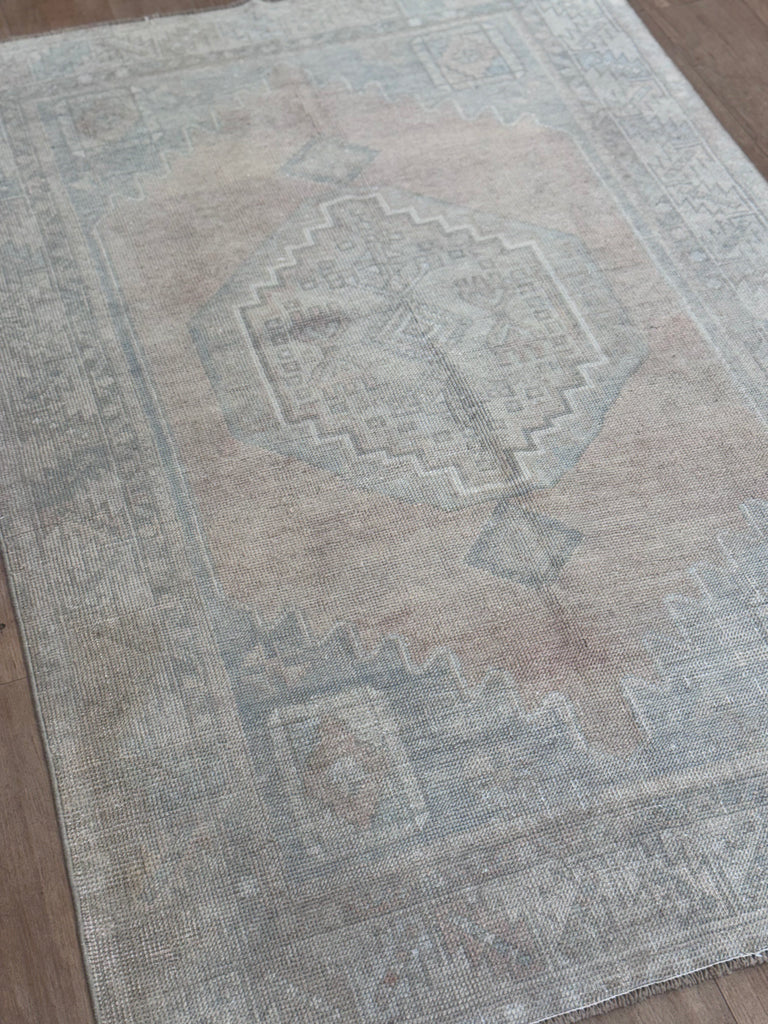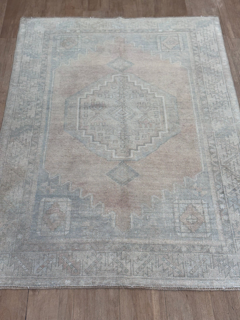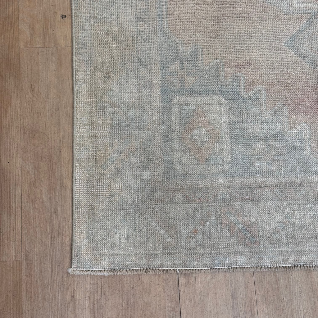 Indulge in the sophistication of our Vance Rug. Handcrafted in Turkey, this elegant vintage rug features a subtle blend of rust, cream, and mint adding a touch of warmth to any space.