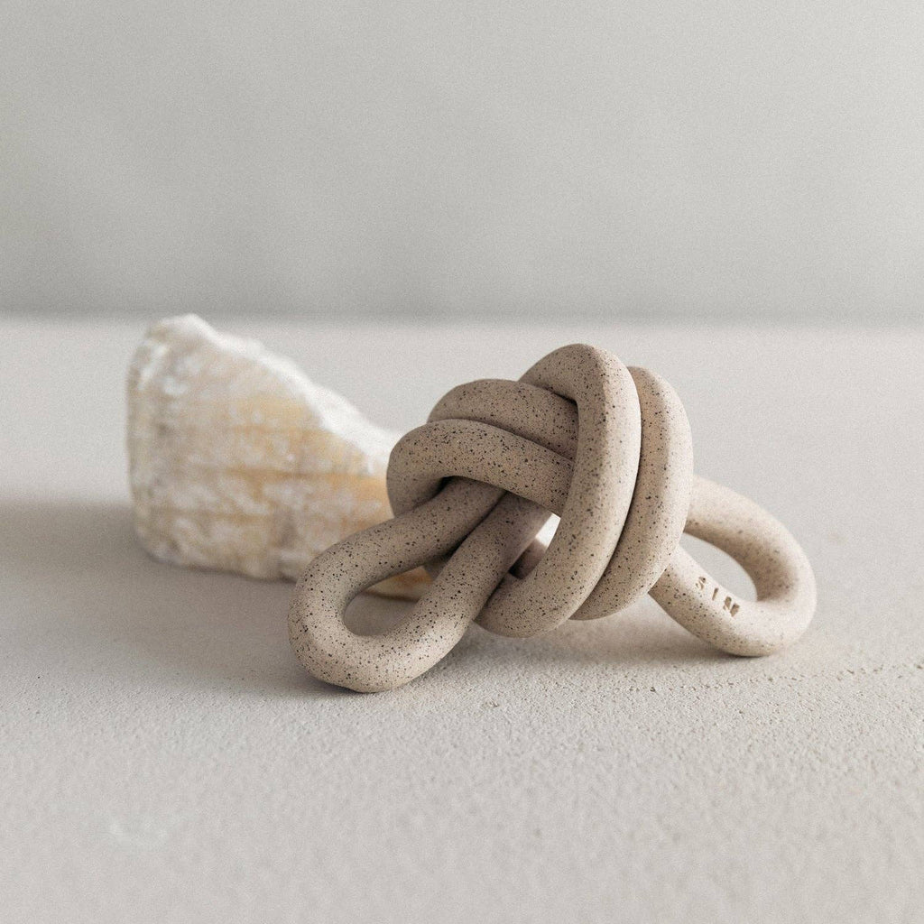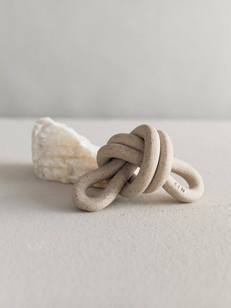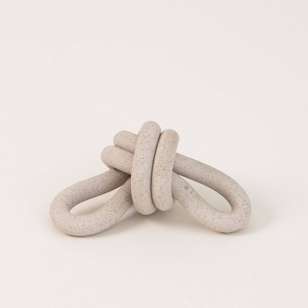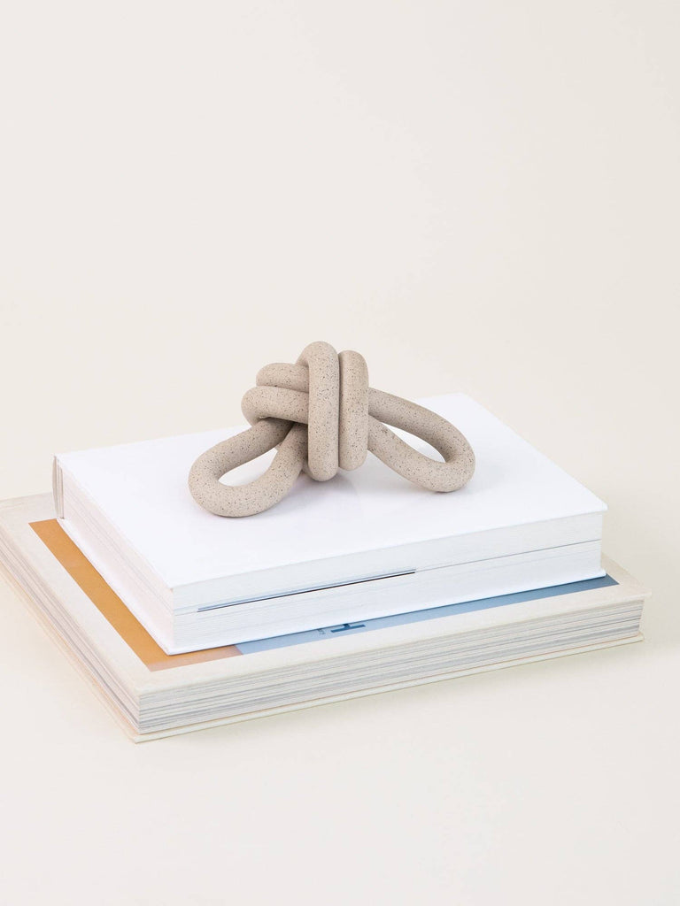 Our ornamental Double Loop knot is made out of clay and will serve you well on windy days when papers and napkins cannot be trusted to sit still. It’s also the perfect topper to a stack of books that demand to be adorned.
