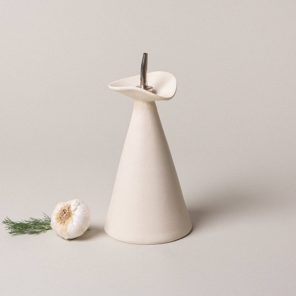 Our Flora Oil Cruet tastefully holds 18 oz of olive oil. Notable for its undulating collar, the Flora isn't just beautiifully designed, it also catches every stray drop of your favorite oil.