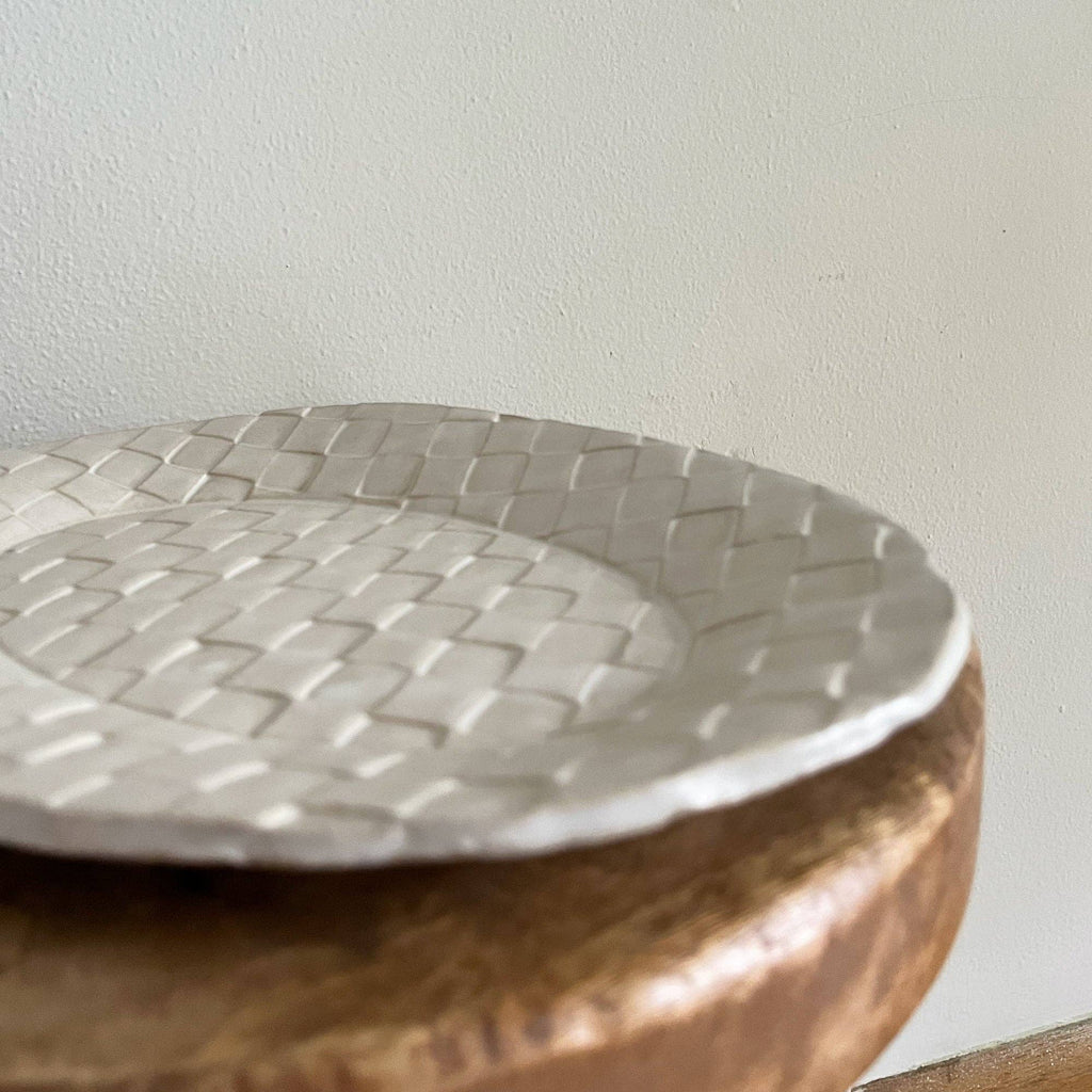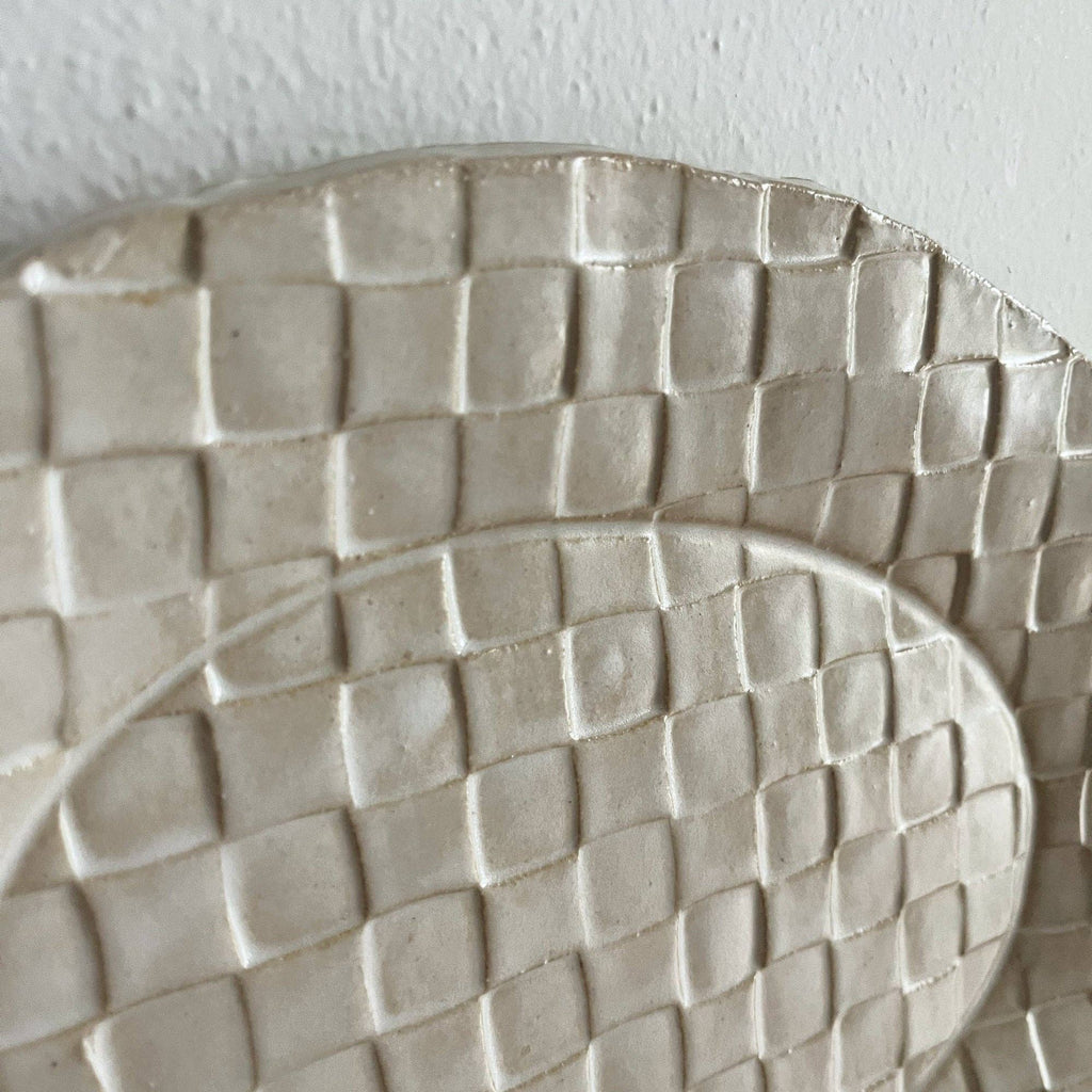 Your basic platter with a not-so-basic texture. Squares are created one at a time for a slightly wabi sabi look, like always. * each one is unique * glazed stoneware * 10" x 7.5"