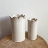 Simple cylindrical vase with a flared, hand-cut scallop top. Just add flowers or pencils. One of our best-selling items. * ceramic * hand wash only *